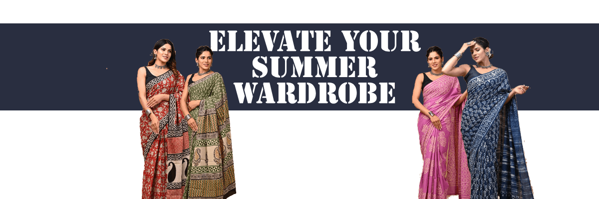 This artisanal technique involves stamping patterns using hand-carved wooden blocks dipped in natural dyes. Styles like Bagru and Sanganeri give these sarees a rustic, earthy elegance.