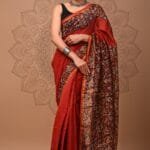 Embrace timeless elegance with this sophisticated rust red Chanderi silk saree featuring an exquisite floral block printed Pallu.